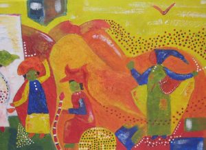 “De cursus Schilderen naar HARTelust heb ik gevolgd een oase van spelen met kleuren, plezier in creëren, thuis komen bij jezelf, onder de prettige leiding van Astrid” .